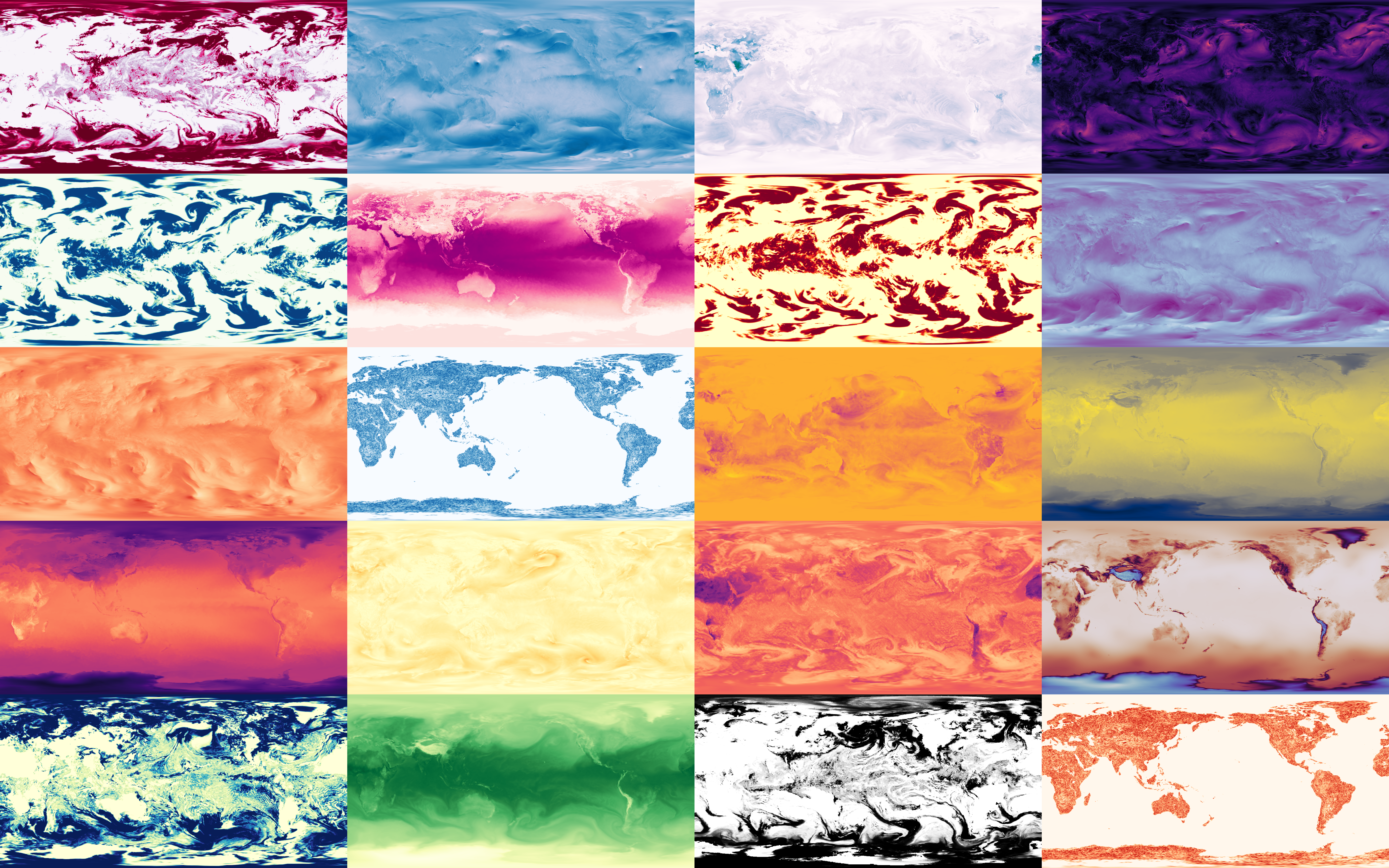 Some climate visualizations I made from a variety of climate forecasting and reanalysis datasets coming from europe's ERA5 and the US's NOAA. I started out by downloading any random files I could find and randomly plotting variables to see what would happen. This then grew to generating smooth timelapses of how these variables behave over time.